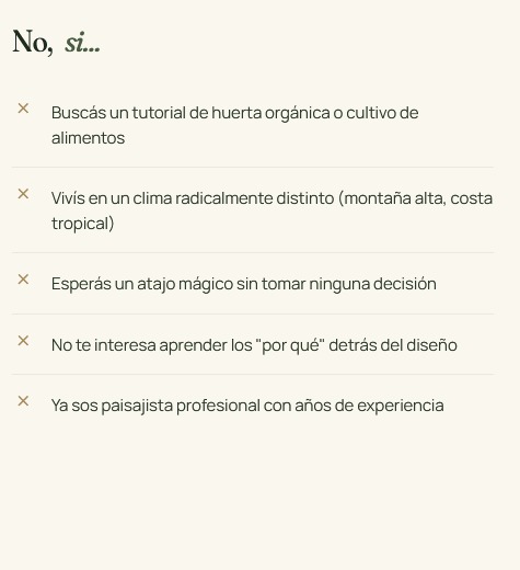No es que no tengas "mano verde". Es que nadie te contó cómo pensar un jardín de verdad — uno que se vea lindo, sea fácil de mantener y dure en el tiempo.